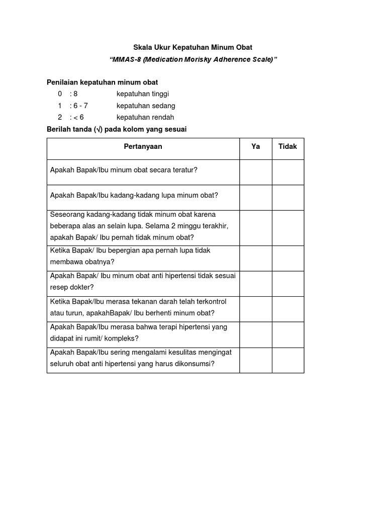 Kuesioner Kepatuhan Minum Obat Sumber : www.scribd.com